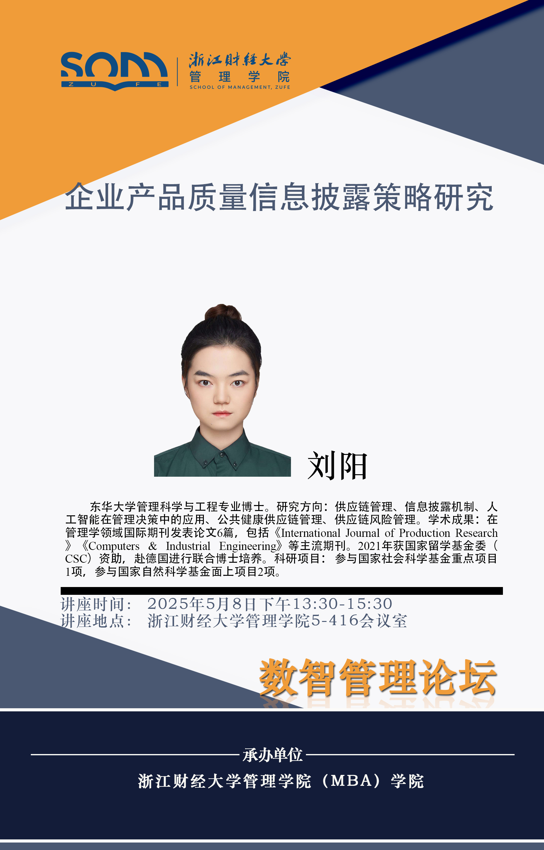 嘟嘟成人网 新财经战略系列学术活动2025年第30期【学术报告】刘阳:企业产品质量信息披露策略研究