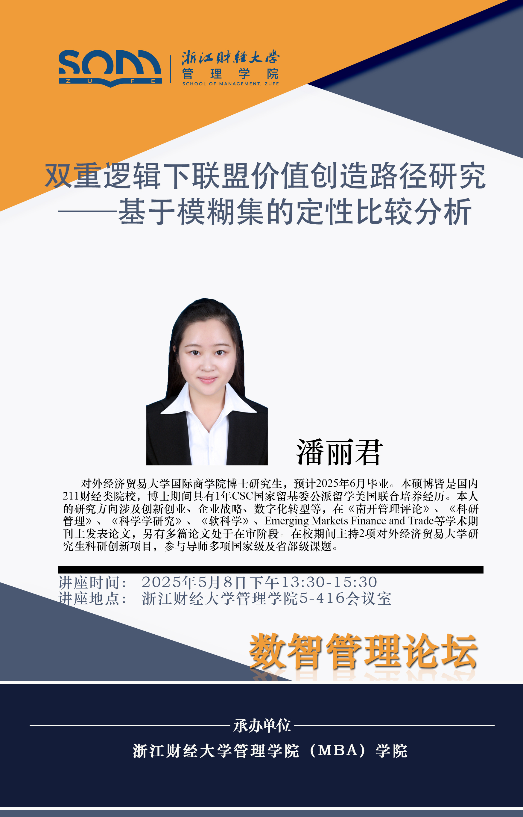 嘟嘟成人网 新财经战略系列学术活动2025年第29期【学术报告】潘丽君:双重逻辑下联盟价值创造路径研究——基于模糊集的定性比较分析
