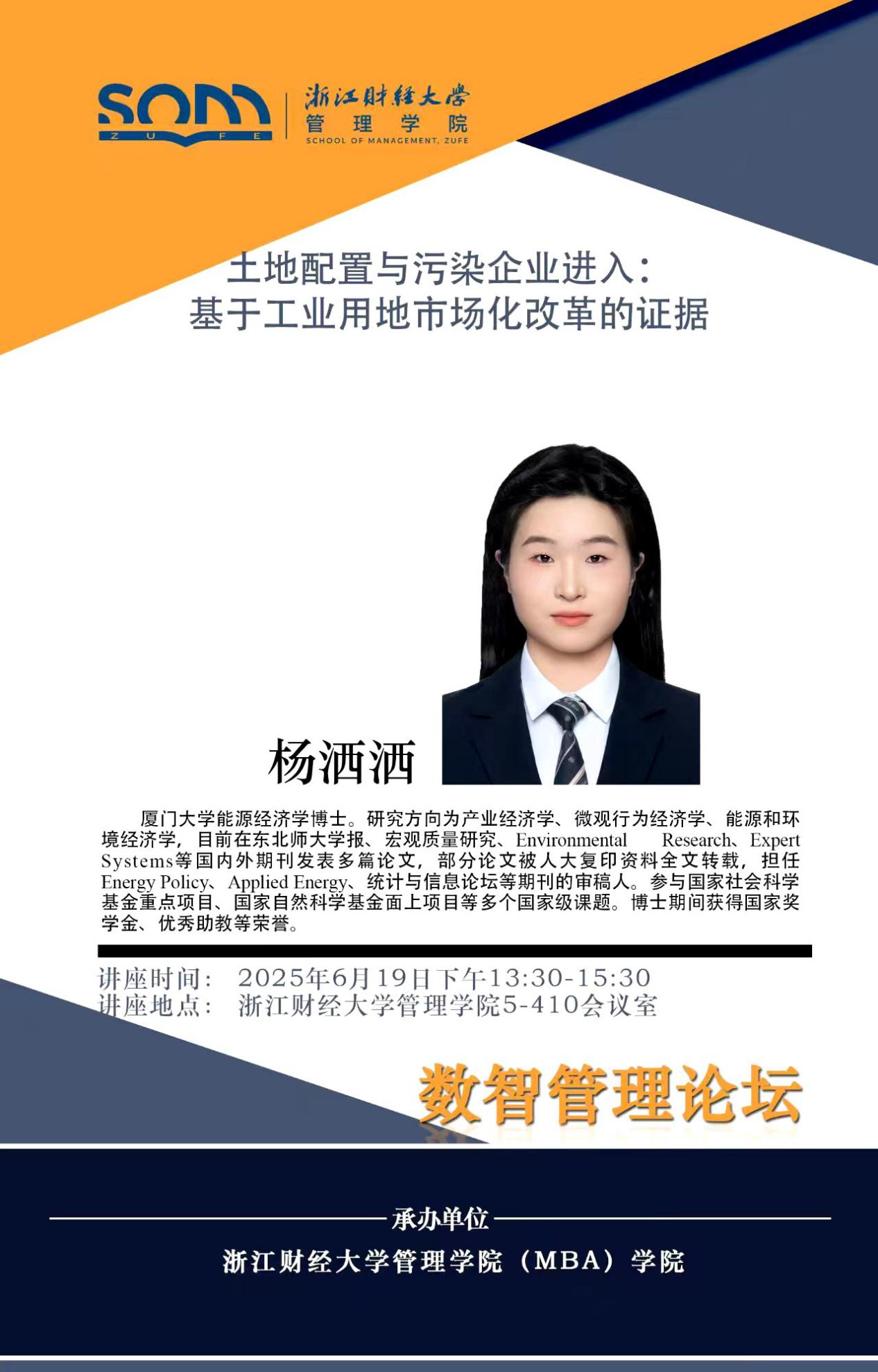 嘟嘟成人网 新财经战略系列学术活动2025年第46期【学术报告】杨洒洒:土地配置与污染企业进入:基于工业用地市场化改革的证据