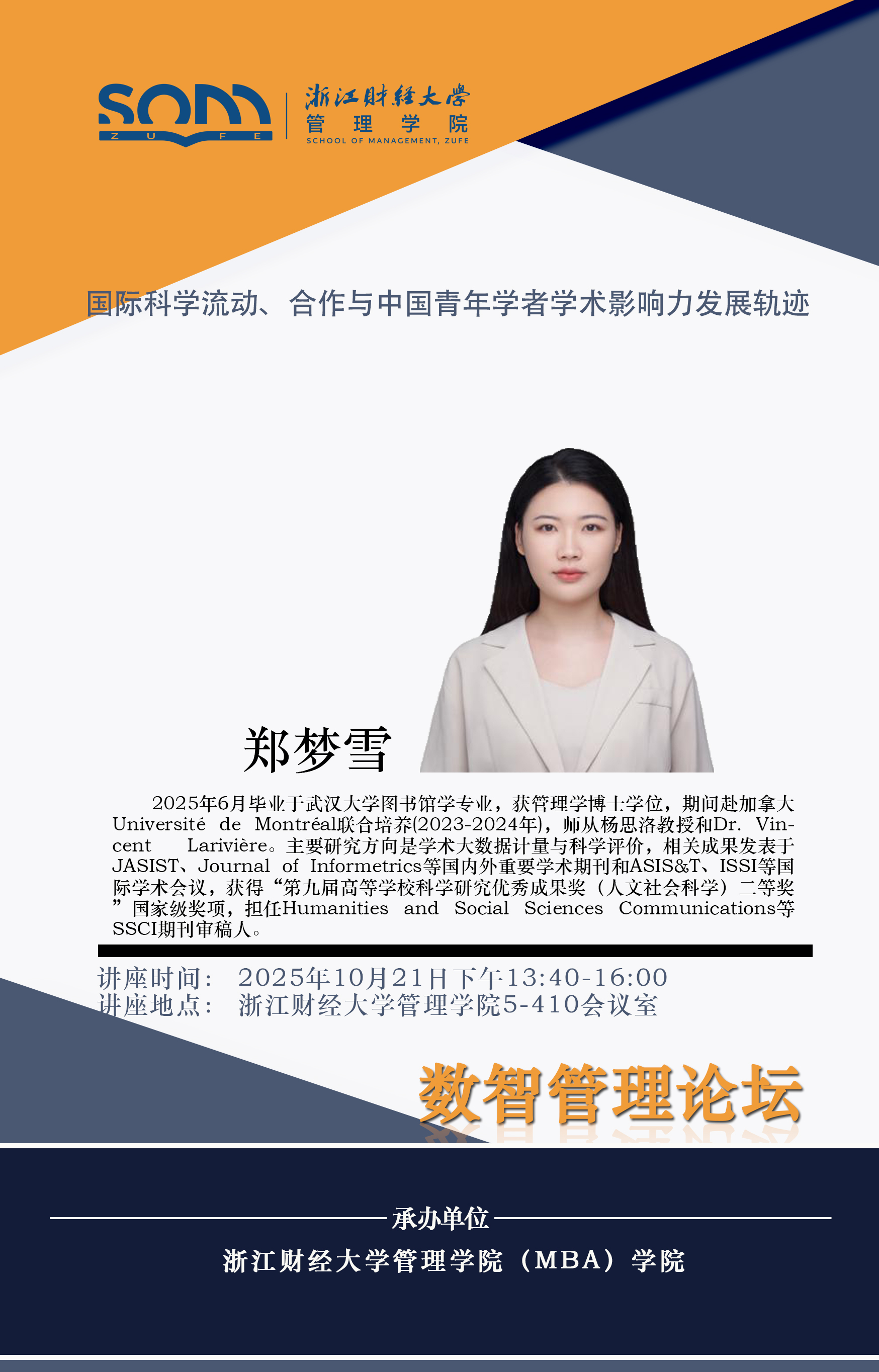 嘟嘟成人网 新财经战略系列学术活动2025年第50期【学术报告】郑梦雪:国际科学流动、合作与中国青年学者学术影响力发展轨迹