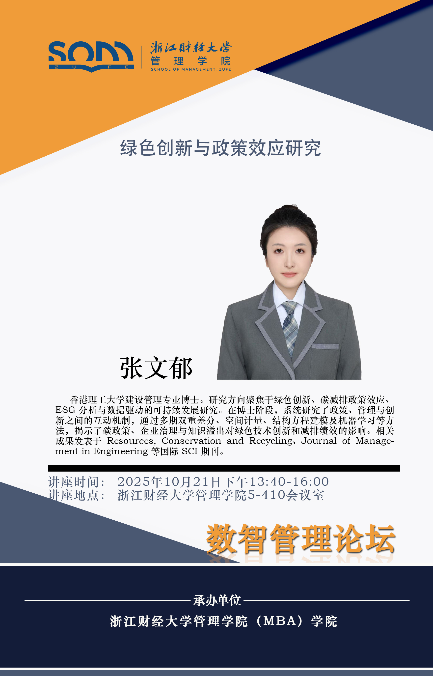 嘟嘟成人网 新财经战略系列学术活动2025年第51期【学术报告】张文郁:绿色创新与政策效应研究