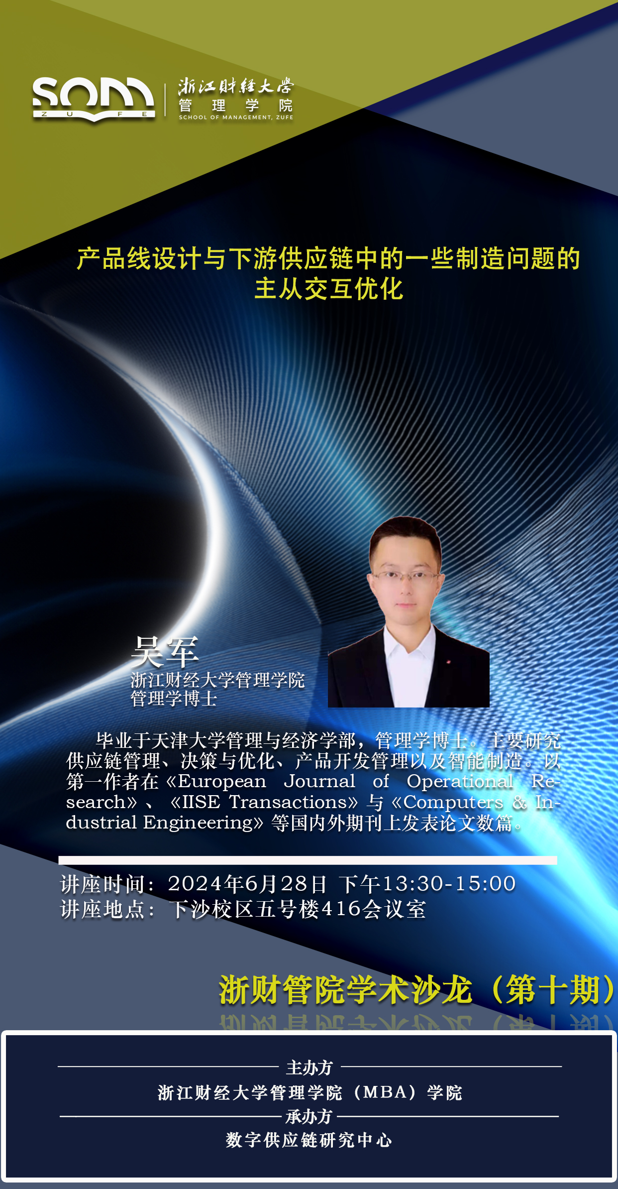 【浙财管院学术沙龙(第十期)预告】吴军:产品线设计与下游供应链中的一些制造问题的主从交互优化
