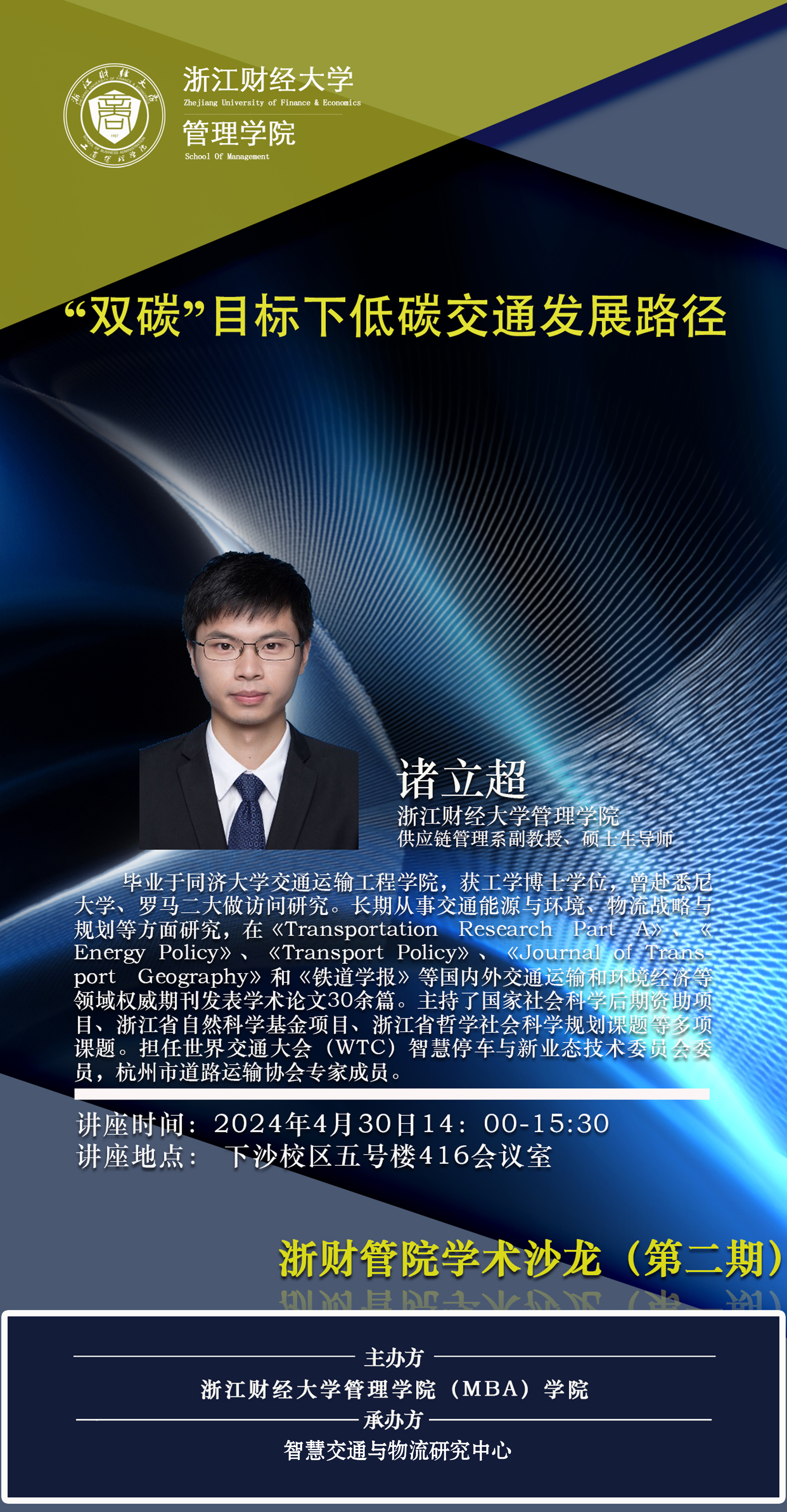 【浙财管院学术沙龙(第二期)预告】诸立超:“双碳”目标下低碳交通发展路径