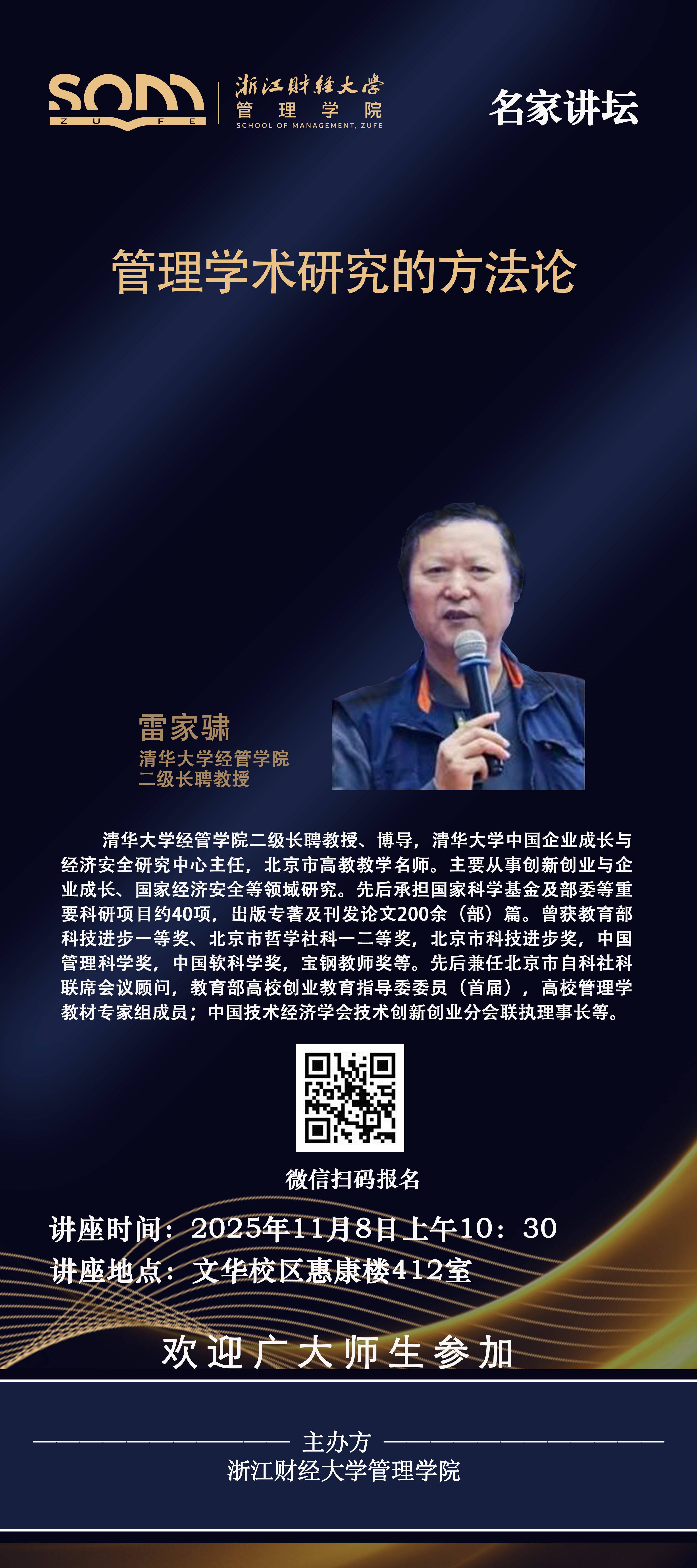 嘟嘟成人网 新财经战略系列学术活动2025年第58期【名家讲坛】雷家骕:管理学术研究的方法论