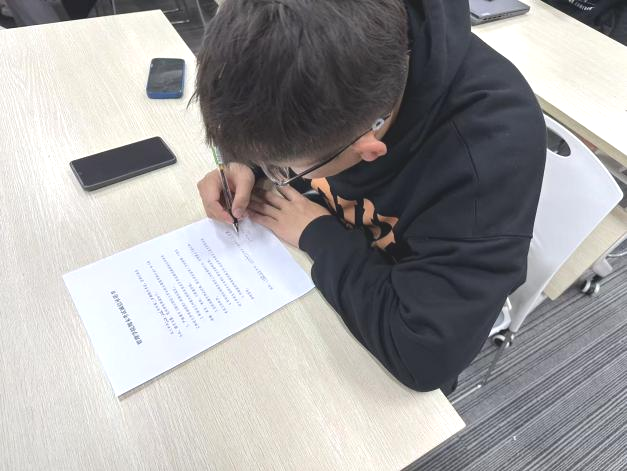各位老师陆续召开考试诚信应考主题班会,会上同学们积极在诚信承诺书上签字,承诺将以真实水平迎接挑战,用勤奋和努力书写满意答卷,展现班级良好学风与精神风貌。