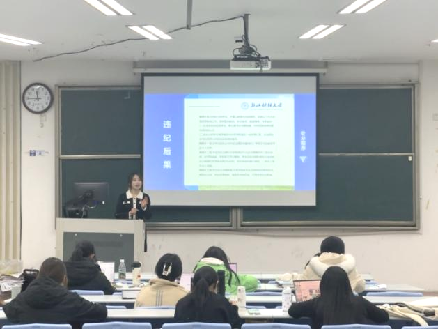 学办主任李桢在班会结合实例,分析了作弊行为的严重后果,包括对个人名誉的损害、对学院学风的破坏,以及对未来职业发展的不利影响。他勉励同学们要珍惜大学时光,努力学习,以实力争取优异成绩,而不是通过不正当手段获取一时之利。