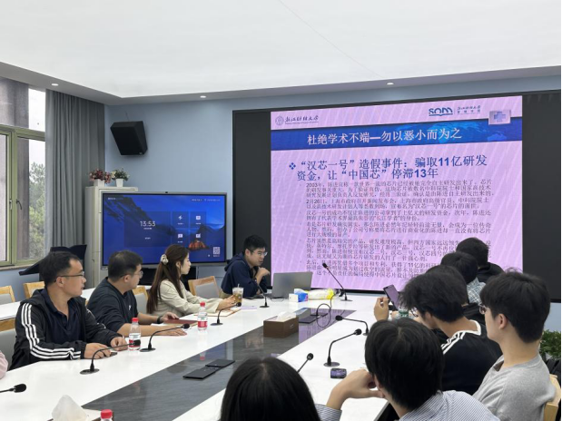 邓年奇老师则从学术诚信的角度,详细阐述了学术不端行为的危害。他结合自身的教学经验,分享了如何在日常教学中培养学生的学术诚信意识。他提到,学术不端行为包括剽窃、抄袭、伪造数据等,这些行为不仅违反了学术规范和道德准则,还损害了学术界的公信力和社会的信任。特别是在当前数字化时代,AI技术的广泛应用给学术剽窃提供了新的手段,使得学术不端行为更加隐蔽和复杂。因此,加强学术诚信教育,提高学生对学术规范和道德准则的认识,显得尤为重要。同时,邓老师也鼓励学生要树立正确的学术观念,坚守学术底线,杜绝任何形式的学术不端行为。