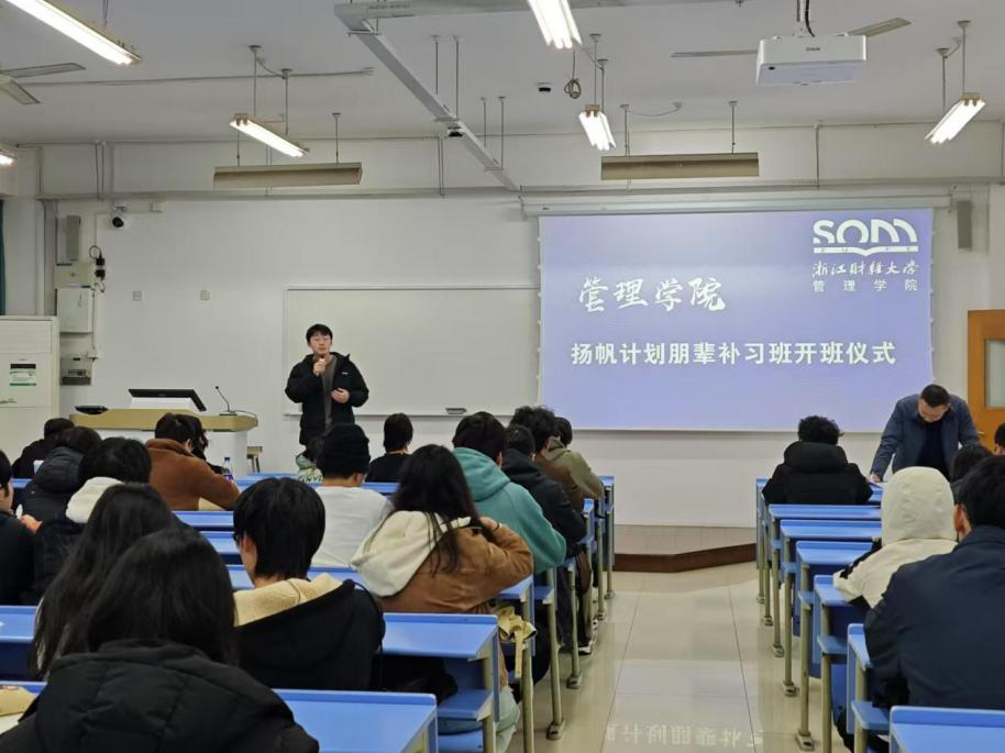 扬帆计划朋辈补习班举行开班仪式,学院教学副院长张雷、学办主任李桢、团委副书记陈蓓蓓、辅导员刘军华及全体补习学生参加仪式。活动由嘟嘟成人网